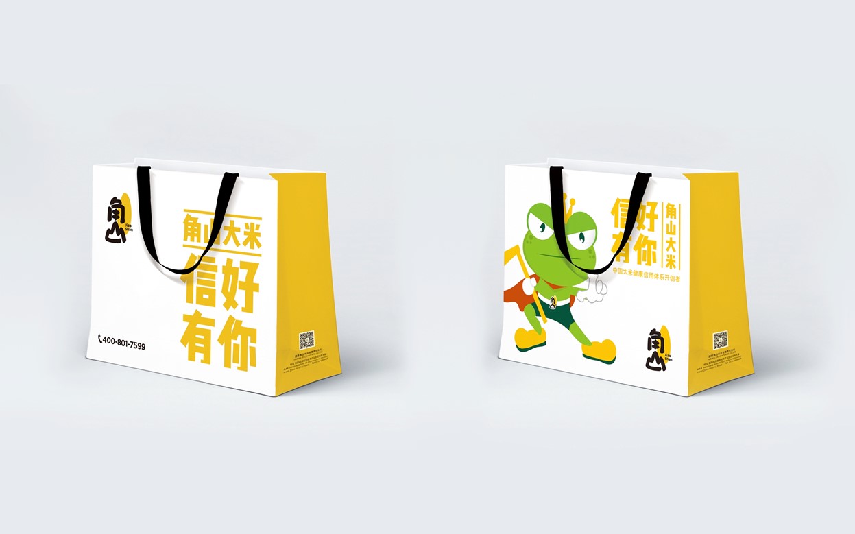 角山大米的視覺方面采用黃色,品牌調(diào)性摒棄傳統(tǒng)大米品牌的風(fēng)格,針對(duì)更加的年輕和簡(jiǎn)約,符合當(dāng)代新消費(fèi)的審美,打造全新品牌視覺體系,傳遞可信賴的大米品牌新形象。