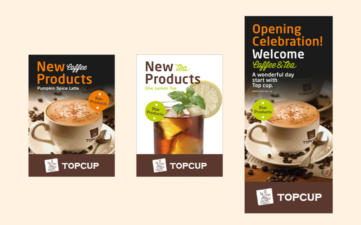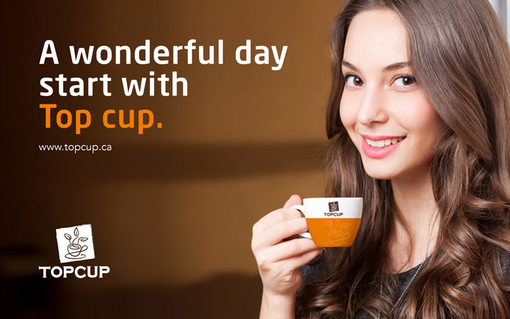 美御有幸成為TOPCUP的合作伙伴,為其塑造整體品牌形象。整個(gè)項(xiàng)目作業(yè)歷時(shí)2個(gè)月左右。TOPCUP品牌整體形象以褐色為主,整個(gè)logo設(shè)計(jì)以圖形加文字形式,圖形以咖啡杯和茶葉的形象演繹,形象而又簡(jiǎn)易,完美的詮釋了“以咖啡形式傳承茶文化”的品牌理念。