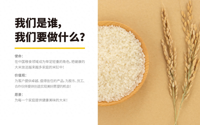 好公司往往以更大的格局看待自己的事業(yè),在偉大愿景的引領(lǐng)之下,把企業(yè)作為安全、健康、文化使命的載體,實現(xiàn)“中國大米健康信用體系締造者”的偉大夢想,重塑消費者對湖南大米的信心。