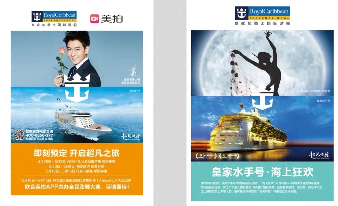 通過對(duì)以上三方面的深刻洞察,以及對(duì)皇家加勒比的產(chǎn)品的深入了解,美御為皇家加勒比設(shè)計(jì)了一整套的品牌落地方案和產(chǎn)品宣傳方案,幫助其在中國(guó)市場(chǎng)更好的服務(wù)旅行社和消費(fèi)者!