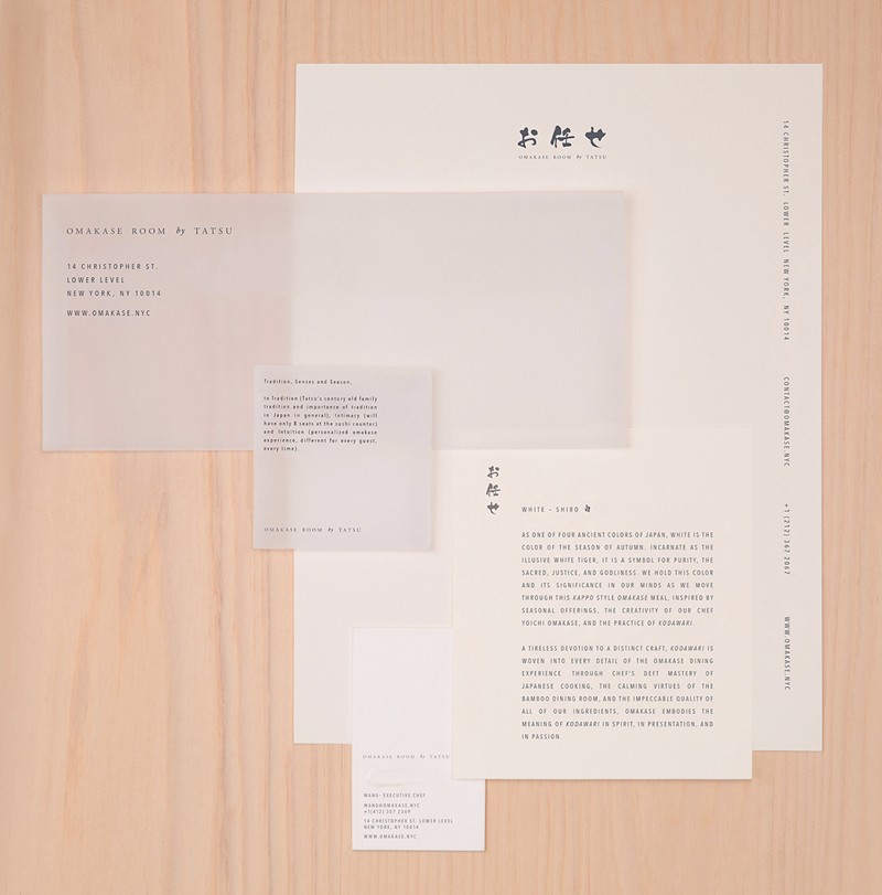 就像餐廳的高品質(zhì)材料,但風(fēng)格的克制,Savvy選擇的幾種字體,將字體Kouzan Gyousho的自由筆觸與Avenir Next Condensed的寬大間距配對,在個體審美特征和概念細微之間找到平衡,引導(dǎo)出一些新的東西約克的建筑標(biāo)志,以及東方風(fēng)度翩翩的書法工藝。這些是細微但可辨別的想法和細節(jié),但仍然與經(jīng)驗保持一致。