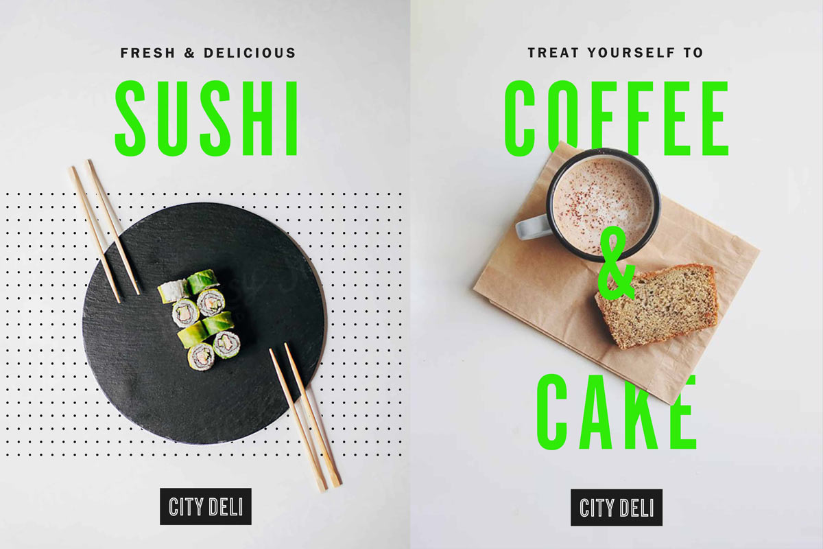 城市熟食店品牌設(shè)計(jì)采用的單色標(biāo)識(shí),它使用霓虹綠的閃光作為亮點(diǎn)。定制圖標(biāo)與用于包裝、標(biāo)牌、POS、制服和社交媒體的簡(jiǎn)單圖案一起創(chuàng)建。